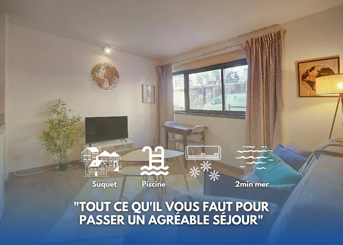 Apartament Fil - Piscine - 2 min Mer - VCA o powierzchni 25 m^2 jest zlokalizowany na nabrzeżu i oferuje Wi-Fi oraz sezonowy basen zewnętrzny. Najbliższe popularne zabytki to Marché Gambetta, maksymalnie 1 km, i Pałac Festiwalowy w Cannes, 11 min piechotą stąd.